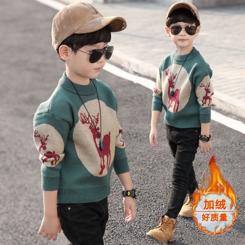Boys’ Sweater New Children’s Wear Children’s Pullover Spring and Autumn Fawn fleece-lined Thickened Western Style Sweater Trendy