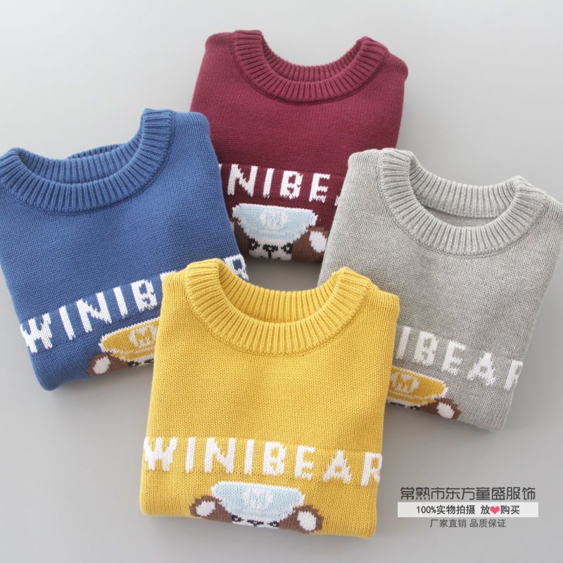 Boys' Sweater Pullover 2021 New Children's Spring and Autumn Top Round Neck Base Knitted Sweater Baby's Pure Cotton Sweater