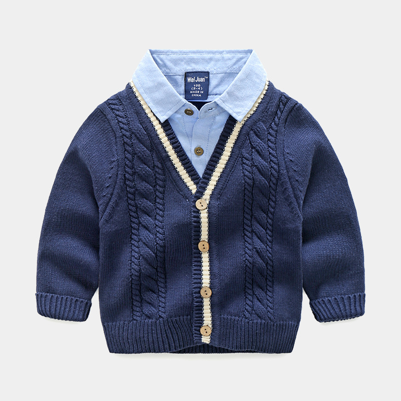 | nameOriginal | Boys' sweater pullover fake two-piece autumn and winter children's cotton sweater Korean style shirt collar children's sweater |