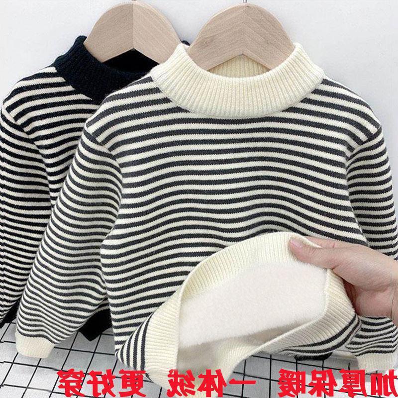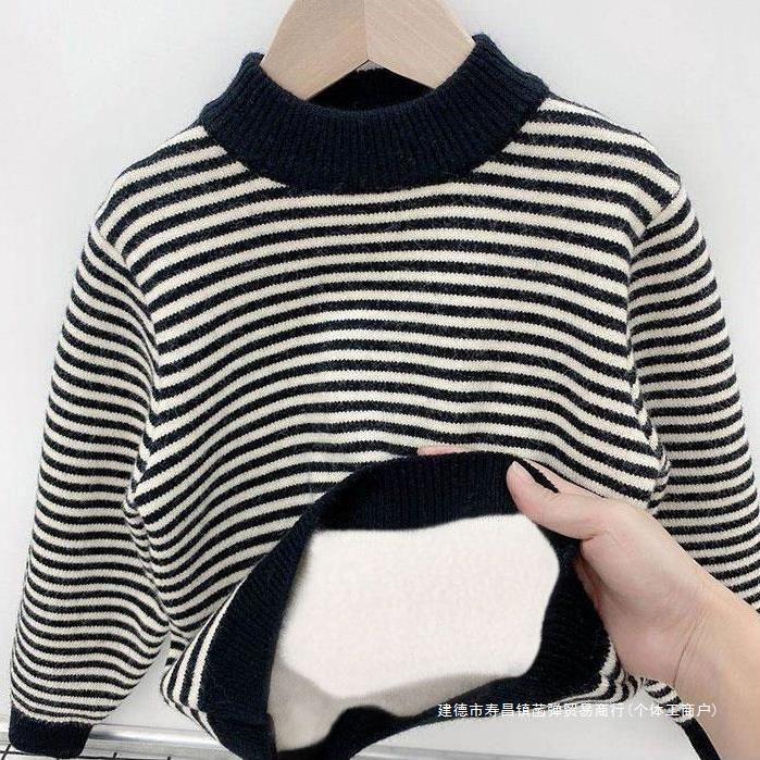 | nameOriginal | Boys' Sweater Pullover fleece-lined Autumn and Winter Western-style Boys' Children's One-piece Fleece Striped Knitted Base Shirt |