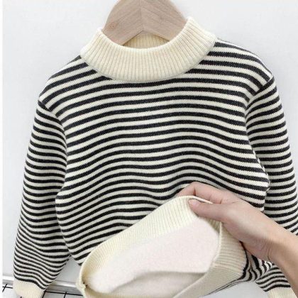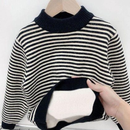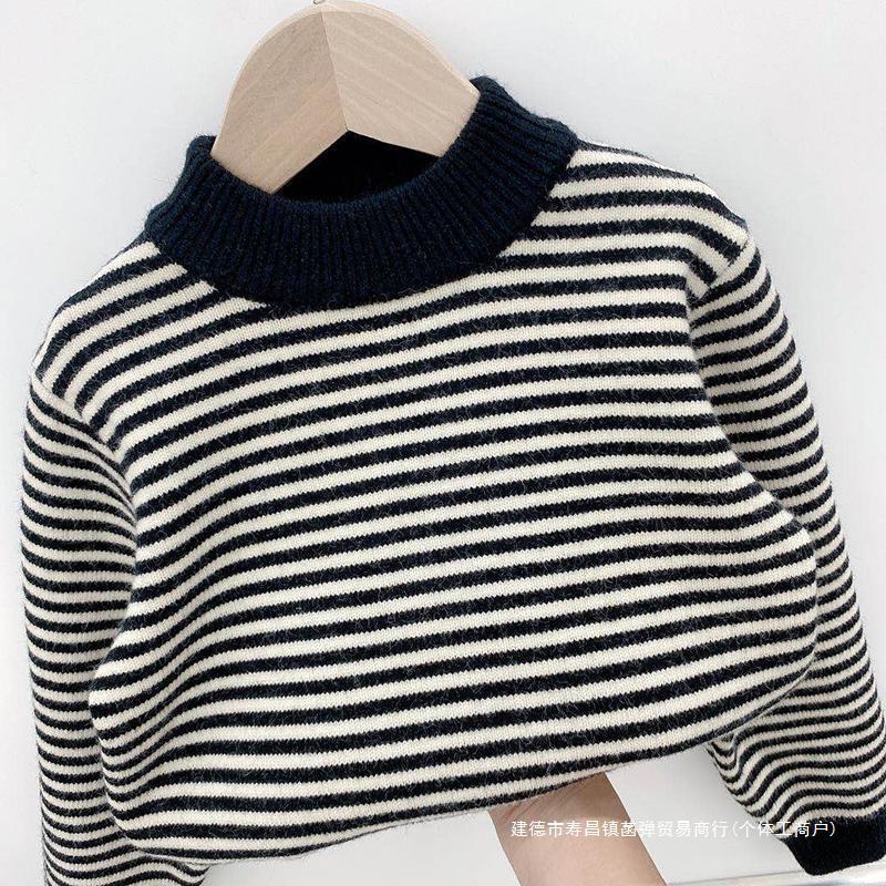 nameOriginal | Boys' Sweater Pullover fleece-lined Autumn and Winter Western-style Boys' Children's One-piece Fleece Striped Knitted Base Shirt |