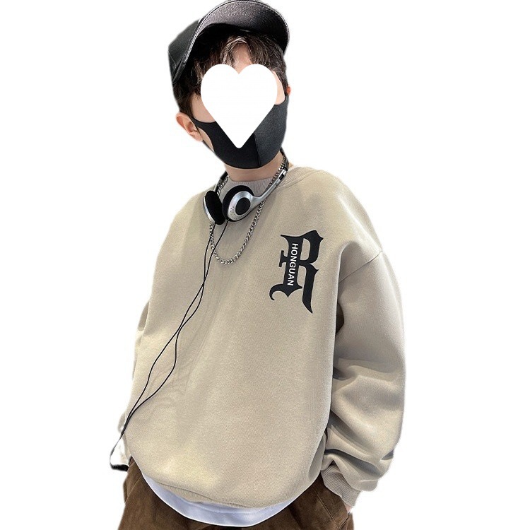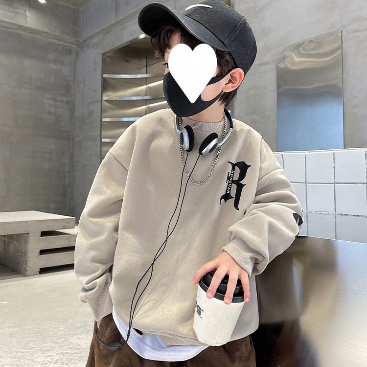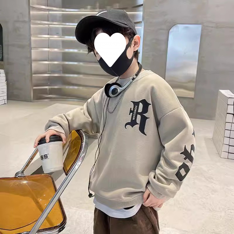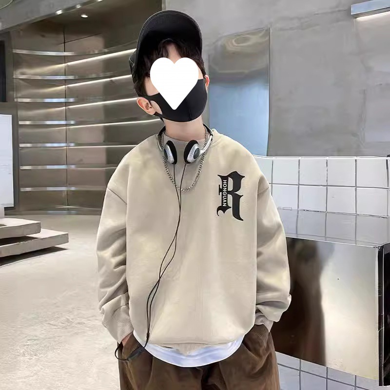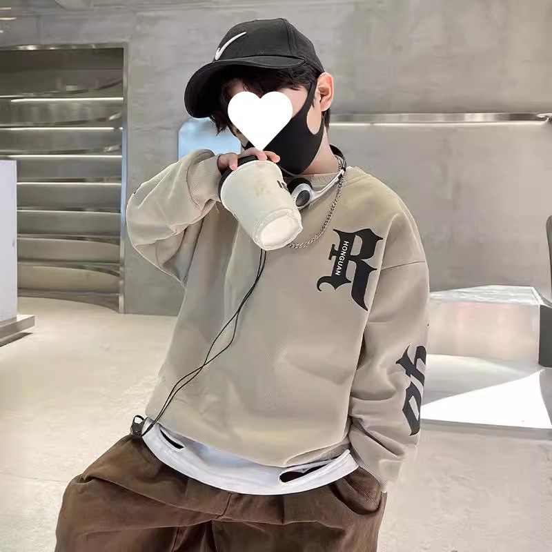 Boys’ sweater spring and autumn bottoming shirt 2024 new cuhk children’s crew neck pullover top fried street net fashion