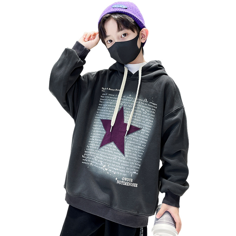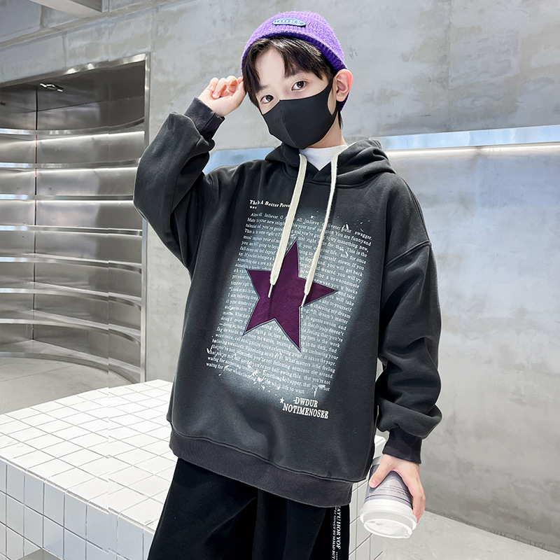 | nameOriginal | Boys' sweater spring and autumn medium and large children's hooded top handsome fried street 2024 new children's clothing autumn and winter clothes |