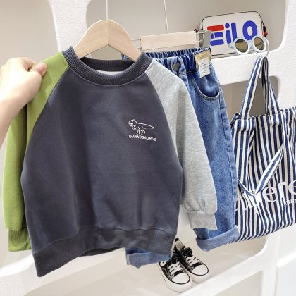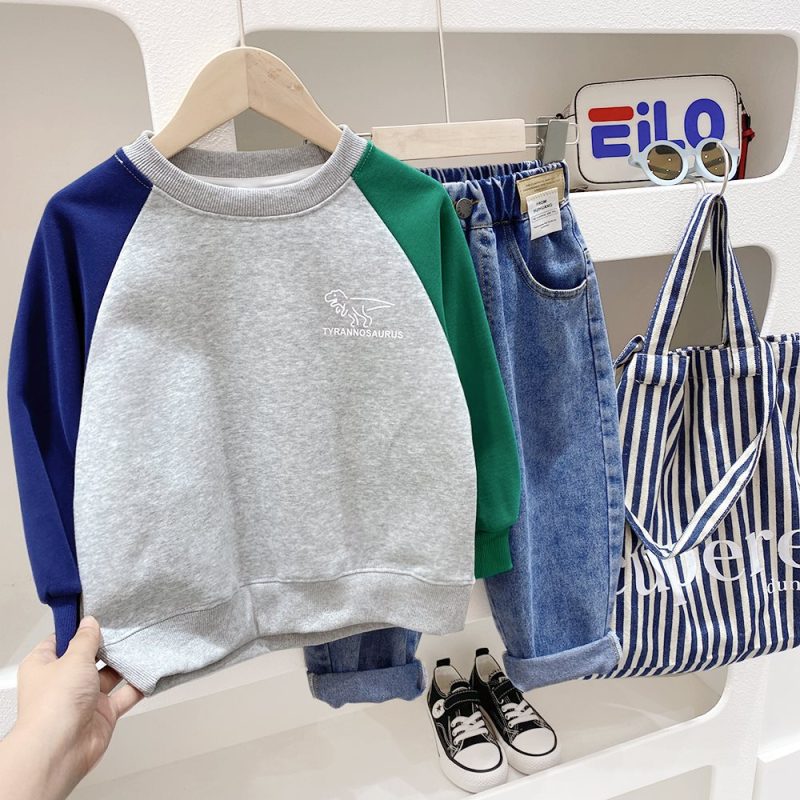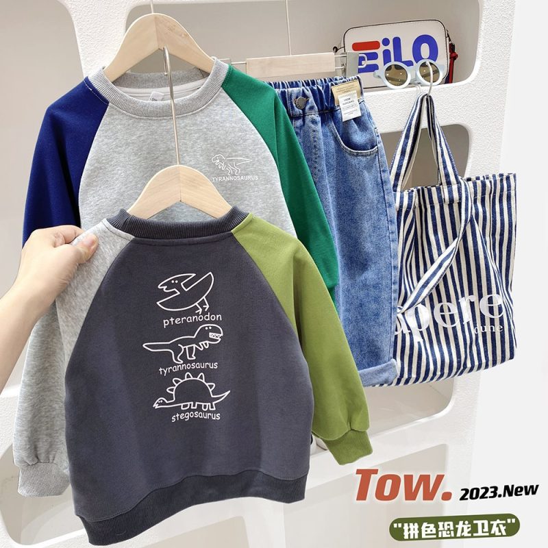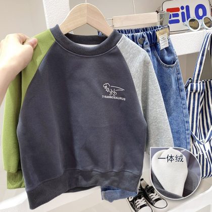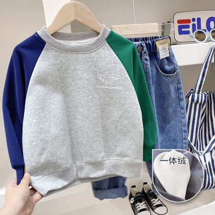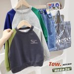 nameOriginal | Boys' Sweatshirt Autumn and Winter 2024 New Children's Wear Big Boy's Color-matching Baby's Autumn Wear Children's Fleece-lined Top |