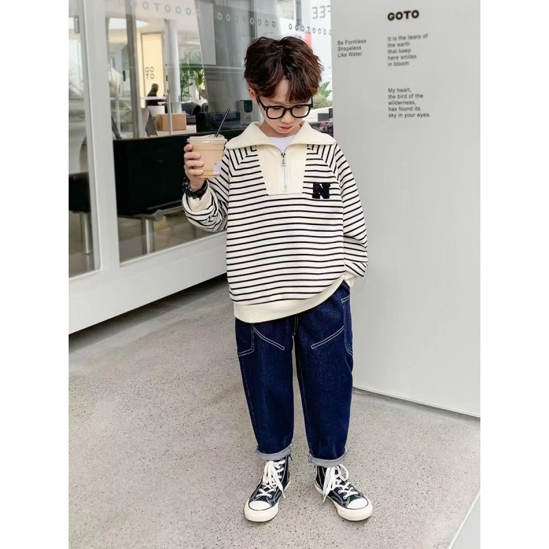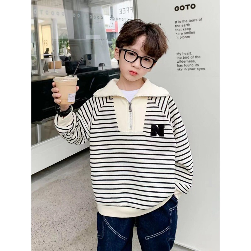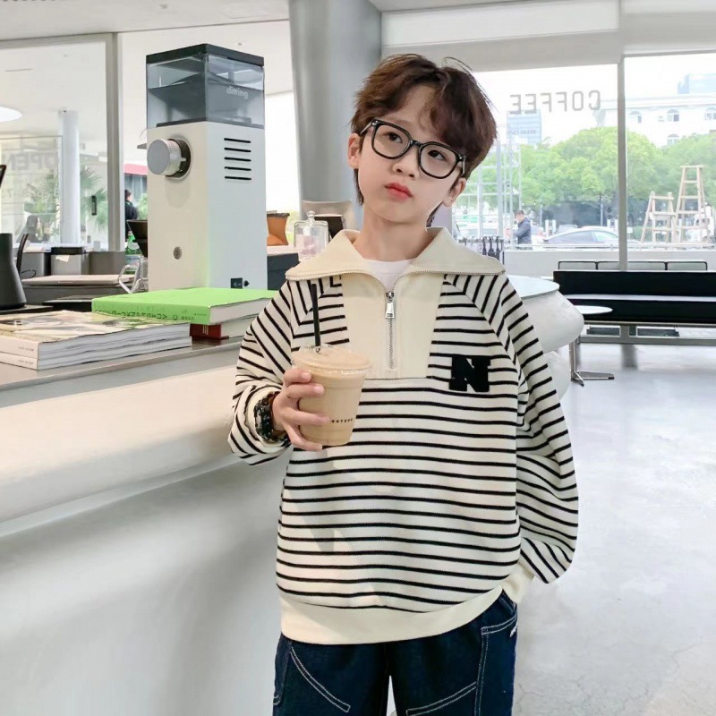 | nameOriginal | Boys' Sweatshirt Spring 2024 New Children's Large Lapel Zipper Spring Clothes Big Children's Black and White Striped Spring and Autumn Children's Clothes |