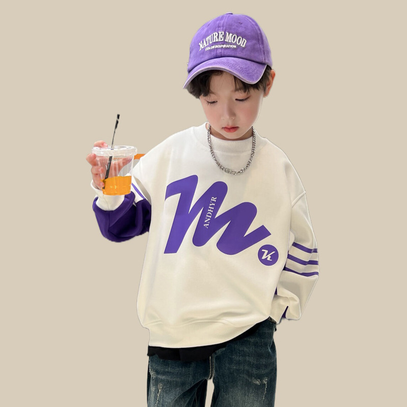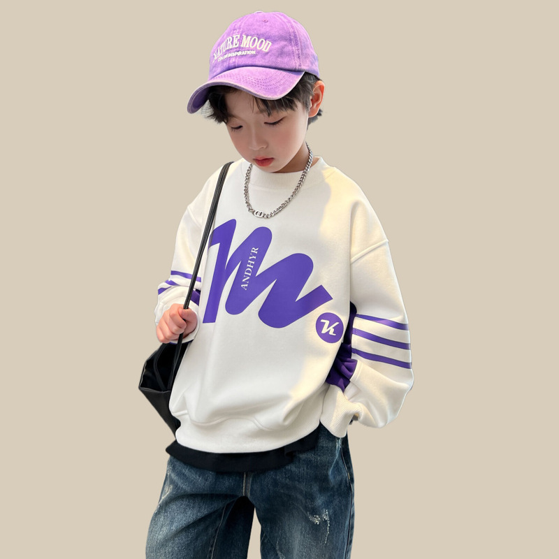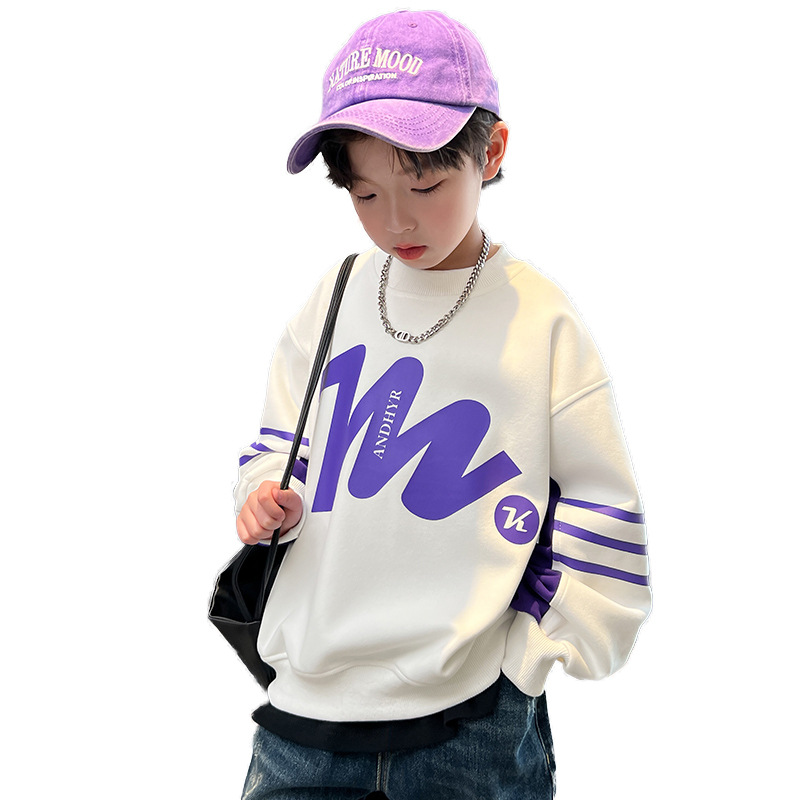 Boys’ Sweatshirt Spring and Autumn 2024 New Children’s Autumn Top Middle and Big Children’s Early Autumn Base Shirt Top Western Style