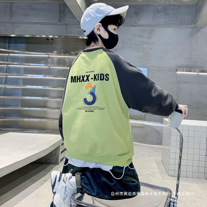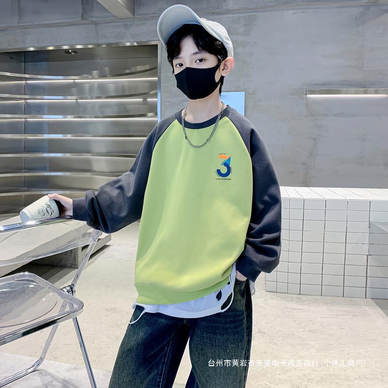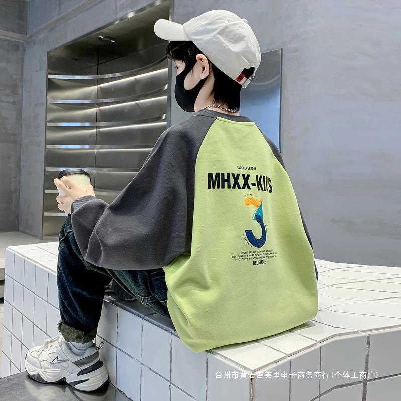 Boys' Sweatshirt Spring and Autumn 2024 New Children's Spring Clothes Big Children's Spring Top Western Style Fashionable Thin T-Shirt