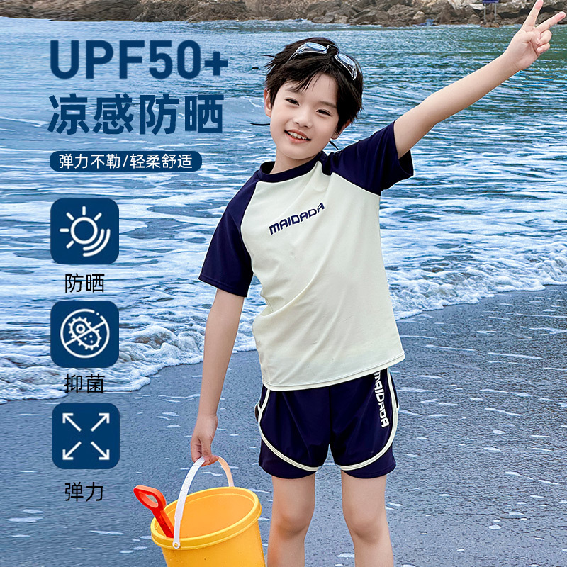 Boys' Swimwear Summer Anti-ultraviolet Antibacterial 2024 New Children's Sunscreen Split Swimsuit Pants Summer Two-piece Set