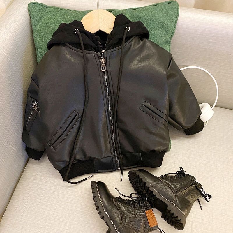 | nameOriginal | Boys' Thickened Leather Coat Autumn and Winter 2023 New Children's Korean-style Fake Two-piece Leather Jacket Children's Trendy Coat |