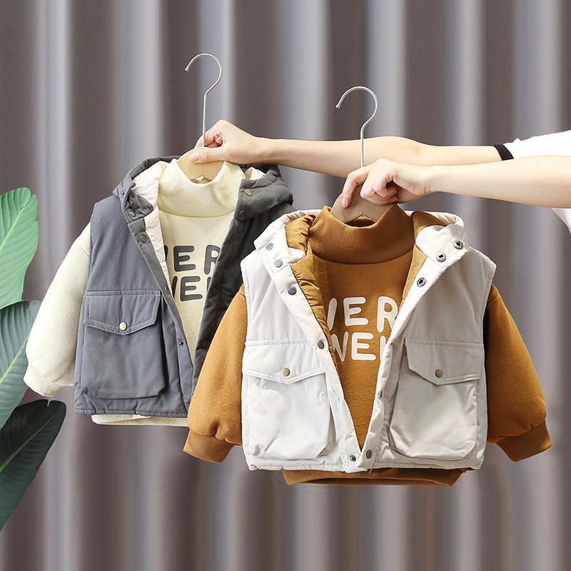 Boys' Thickened Vest Autumn and Winter 2023 New Children's Hooded Coat Baby's Western Style Winter Warm Clothes Handsome