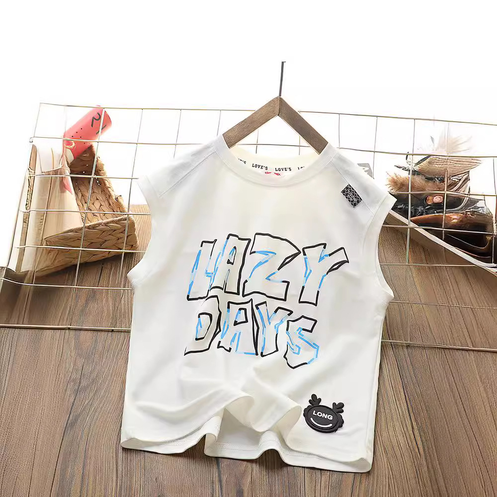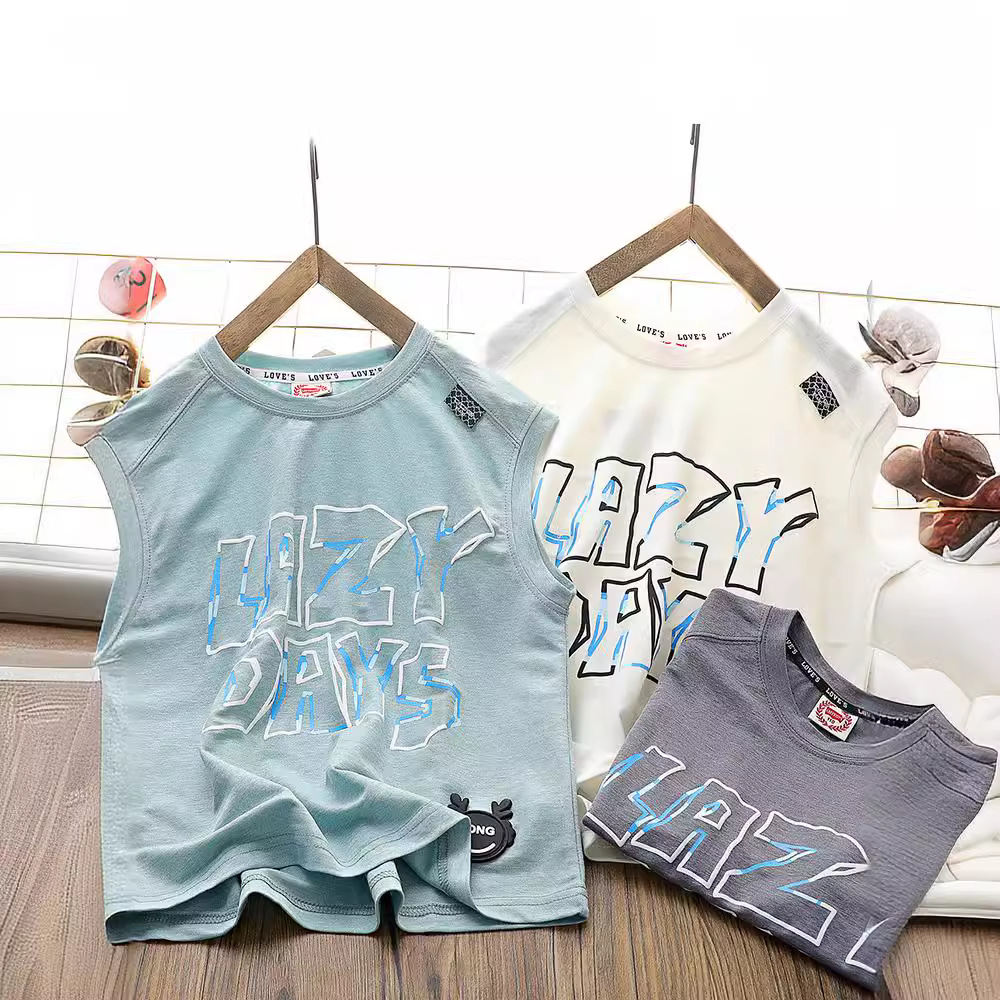 | nameOriginal | Boys' Vest 2024 Summer New Children's Wear Children's Letter Sleeveless T-Shirt Korean Style Middle and Big Children's Crewneck T-Shirt Trendy Style |
