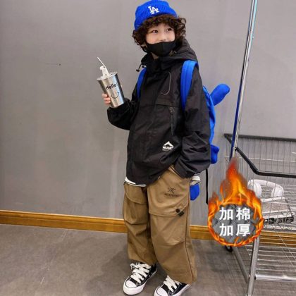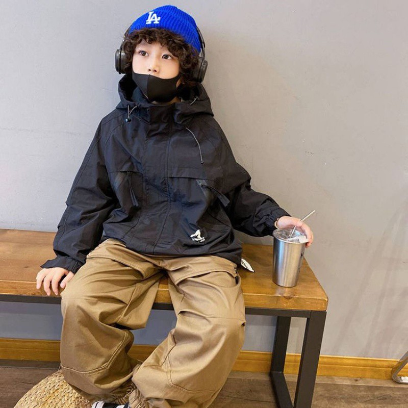 Boys’ waterproof jacket Autumn New 2023 medium and big children’s fashionable all-matching children’s workwear top