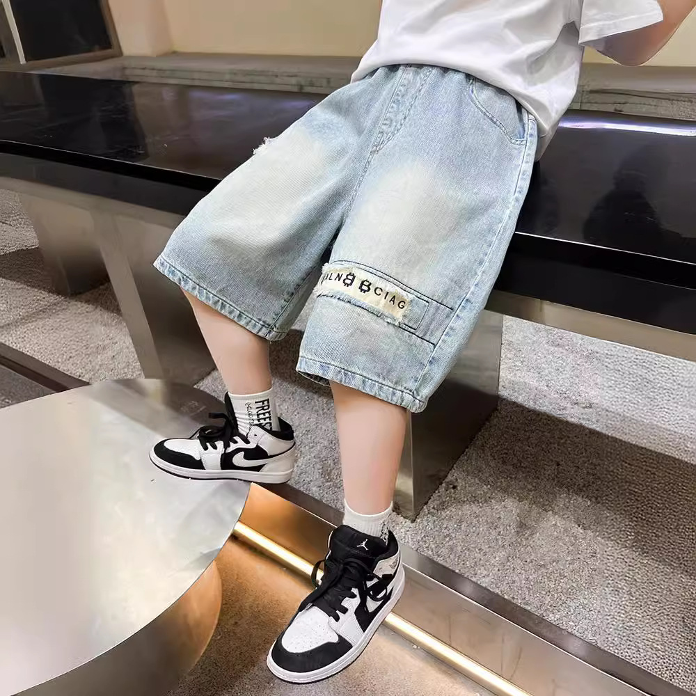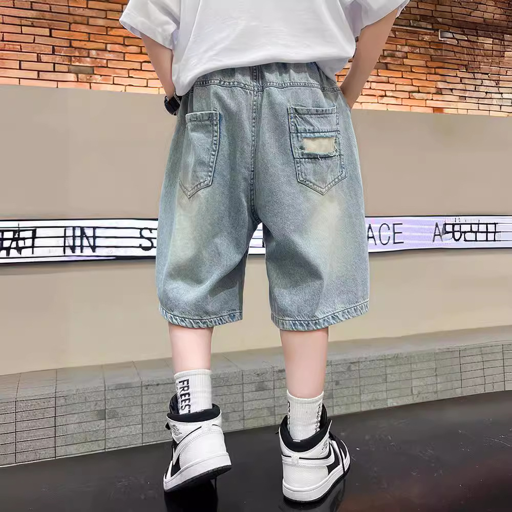 | nameOriginal | Boys' Western Style Rip Denim Shorts Summer New 2024 Medium and Large Children's Summer Thin Pants Boys Pants |