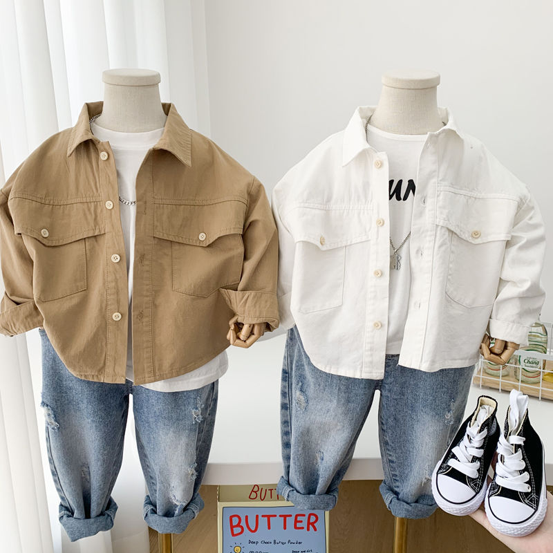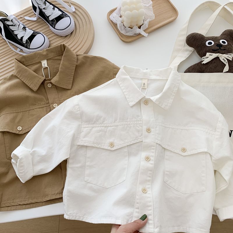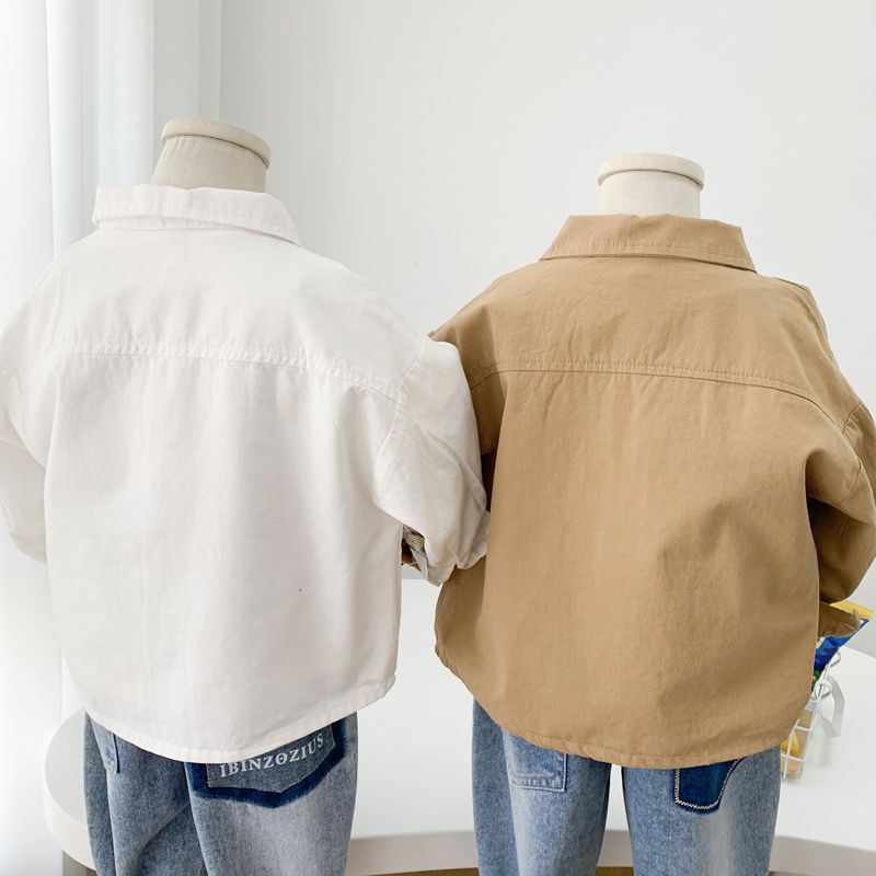 | nameOriginal | Boys White Shirt 2024 New Style Children's Spring and Autumn Solid Color Shirt Children's All-match Casual Top |