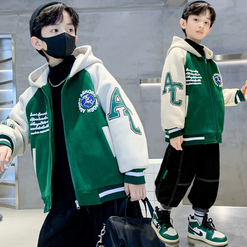 Boys' winter coat autumn and winter 2023 new thickened clothes boys' quilted baseball uniform for middle and big children
