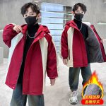 nameOriginal | Boys' Winter New Color-block fleece-lined Mid-length Parker Coat 2024 Children's Sports Warm Hooded Coat |