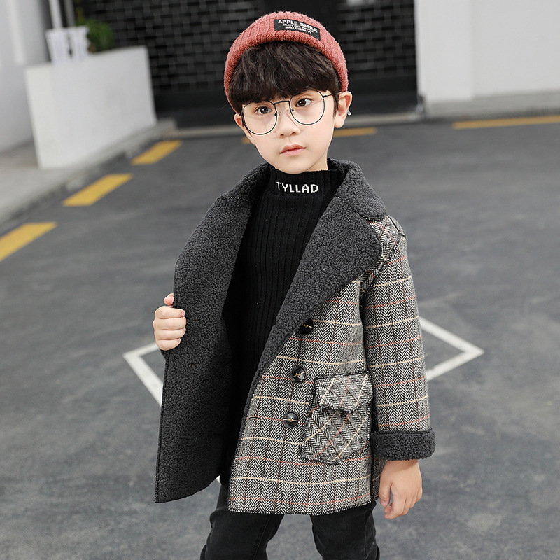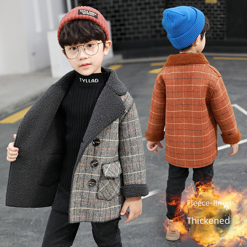 Boys’ Woolen Coat 2024 Autumn Wear Children’s Western Style Mid-length Woolen Coat Children’s Fleece-lined Thickened Winter Wear