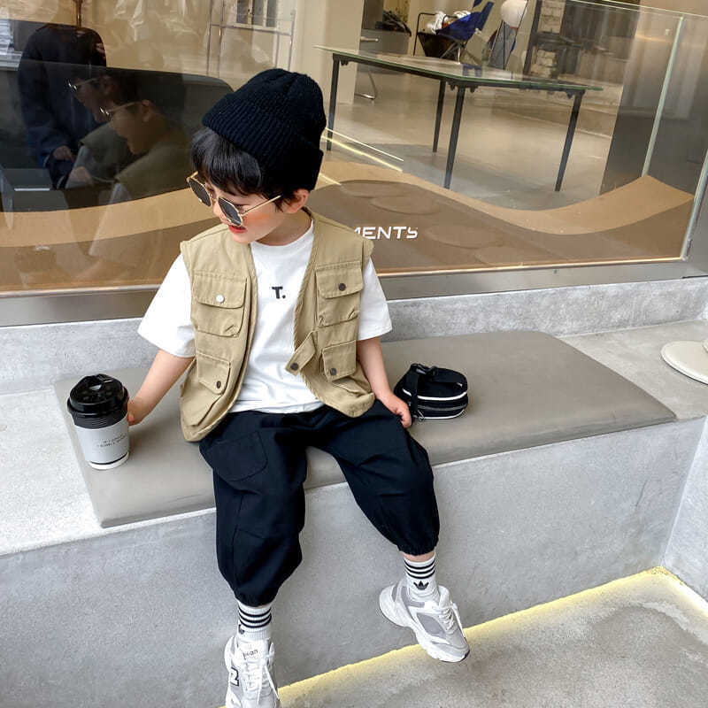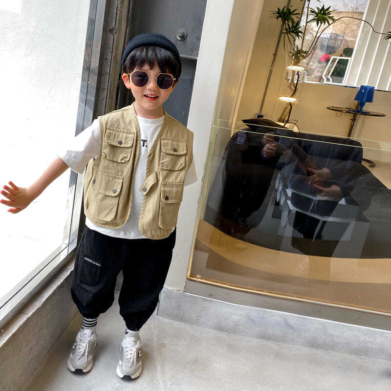 Boys' Workwear Style Vest 2024 Spring and Autumn New Children's Western Style Vest Waistcoat Baby's Autumn Coat Fashionable Clothes