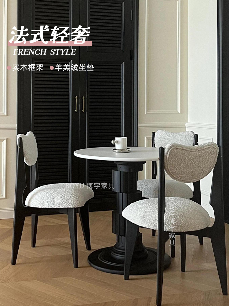 | nameOriginal | Boyu Furniture Nordic French solid wood dining chair household small apartment retro chair mid-century wabi-sabi style backrest makeup chair |