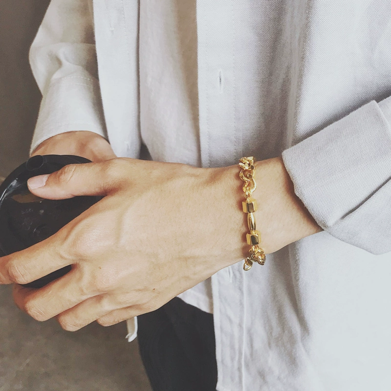 | nameOriginal | Bracelet for men with trendy personality, cool ins niche design, simple student golden street hip-hop trendy male single cold style |