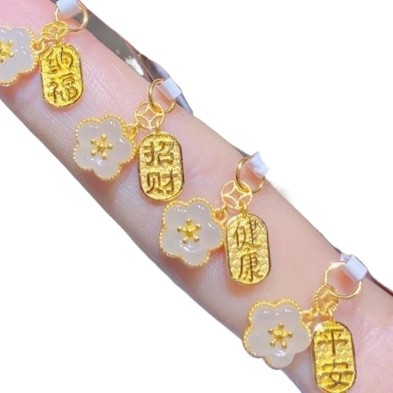 | nameOriginal | Bracelet pendant ancient gold inlaid white jade tag small peach blossom necklace small square pendant bracelet accessories wholesale |