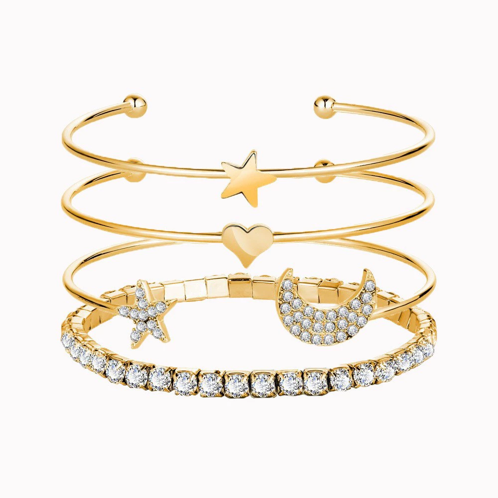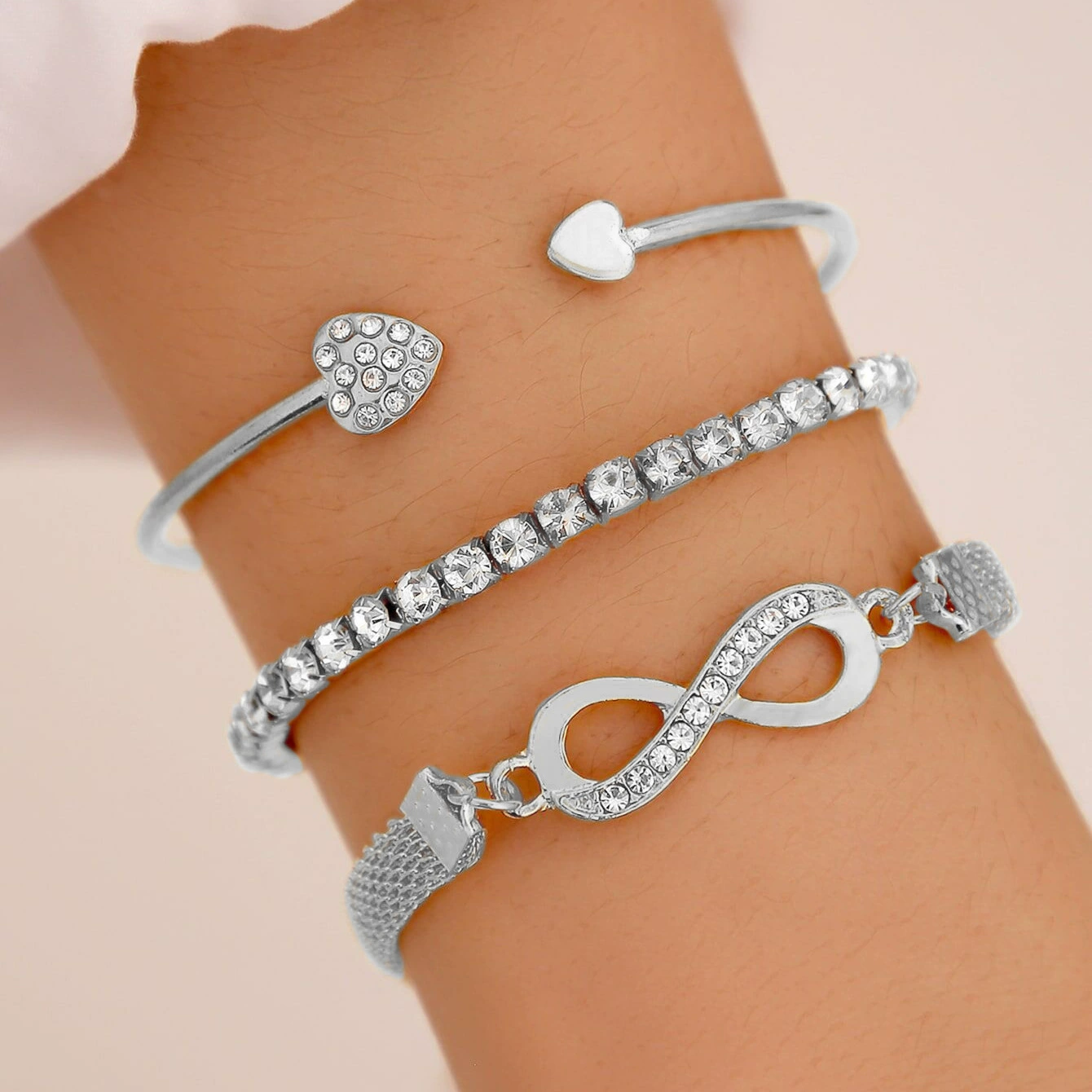 Bracelets WOMEN 3 Piece Set Love Open Bracelet Retro Lucky 8 -character Bracelet 3 -piece