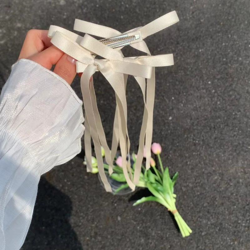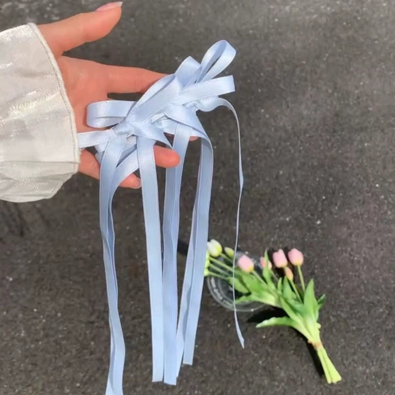 Braided hair ribbon tied with hair bow hairpin white double ponytail hair accessories women's hair tied ribbon streamer headband headdress