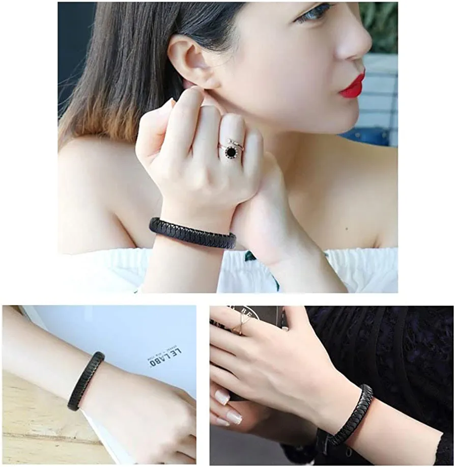 This bracelet is made of high-quality leather and features stylish metal accents. It’s not only a fashionable accessory, but also a practical one that can be worn every day.