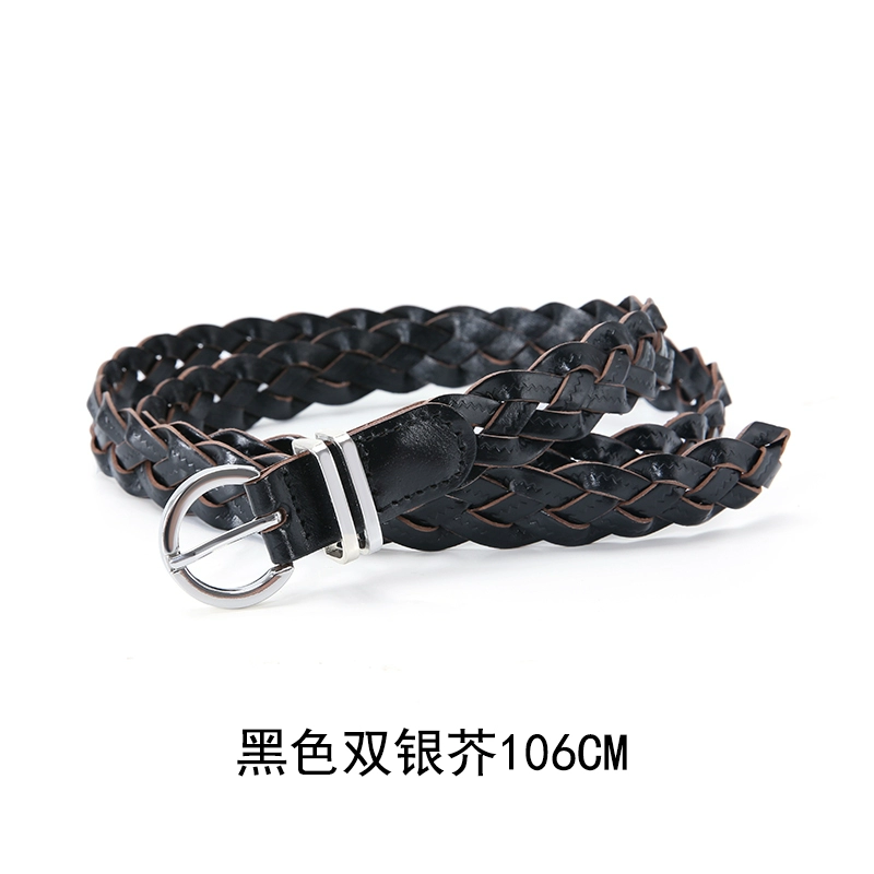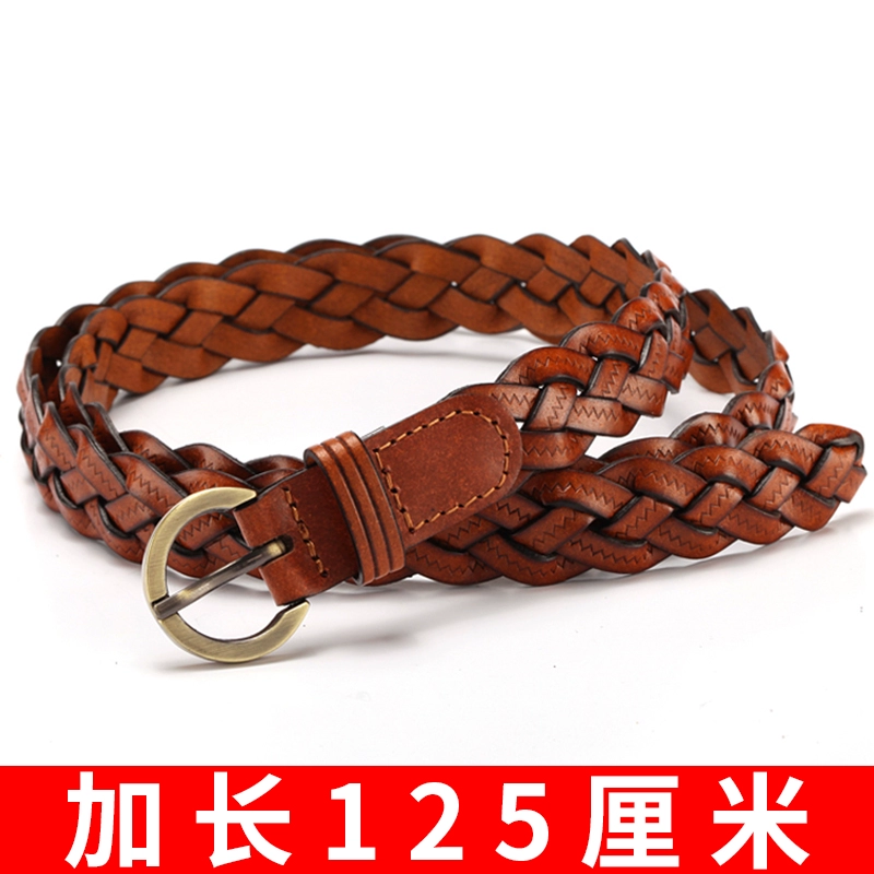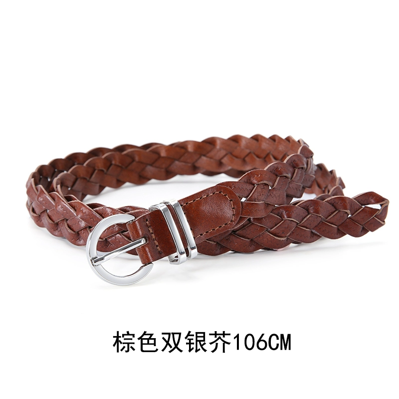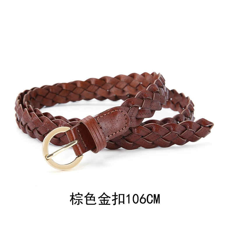 Braided Women's Summer Fashionable No-Punch Brown Belt