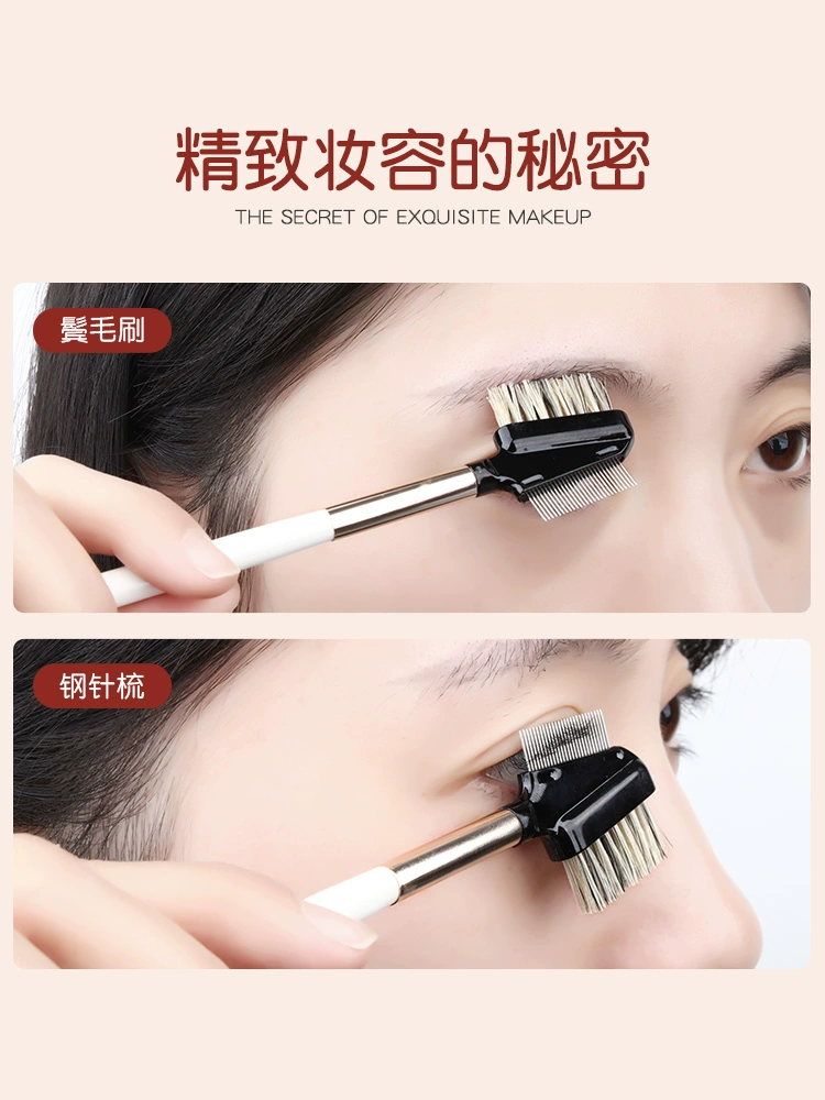 Brainbow combed steel needle pole fine eyebrow brush double head bristle professional eyebrow sweeper combing eyelashes comb
