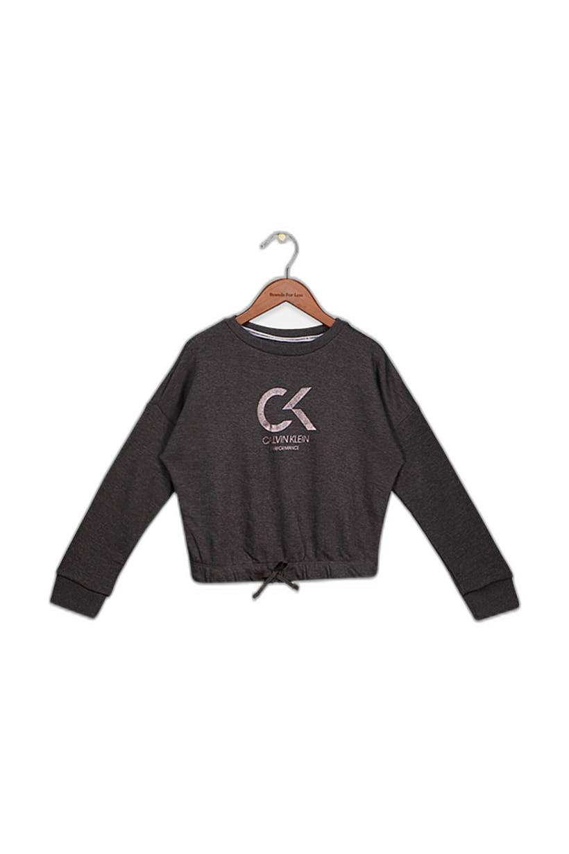 Brand Logo Long Sleeve Sweatshirts for Girls in Charcoal Heather.