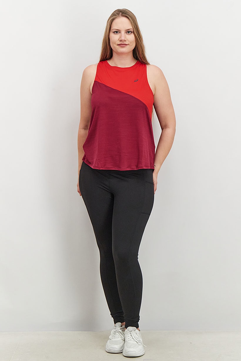 Women Slim Fit Brand Logo Running Tank Top, Dried Berry