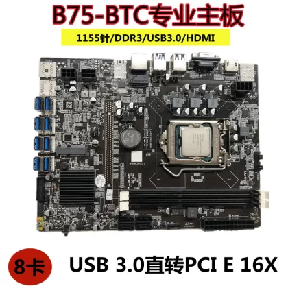 | nameOriginal | Brand new 8-card B75 computer motherboard CPU set LGA1155 DDR3 memory 8 USB to PCIE graphics card |