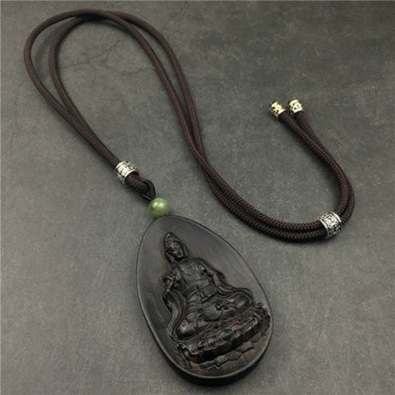 Brand new ethnic style cotton and linen rope necklace ebony pendant pendant long men and women accessories sweater chain hanging chain