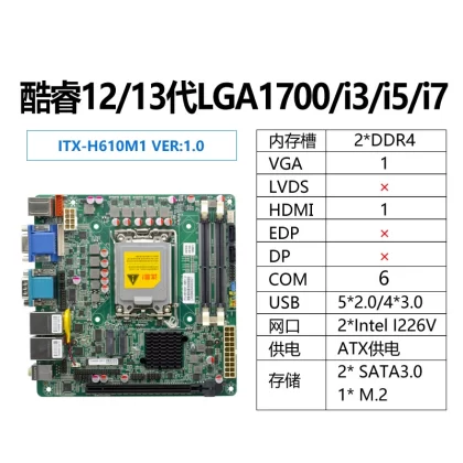 | nameOriginal | Brand new H510M1 mini ITX industrial control motherboard 10/11 generation i9LGA1200 dual network port 6-string desktop all-in-one machine |