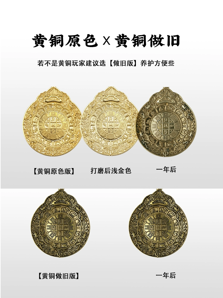 Brass Nine Palaces Bagua Spell Card, Weishi Original Design Tibetan Feng Shui Key Pendant Lucky Car Bag Pendant Gift