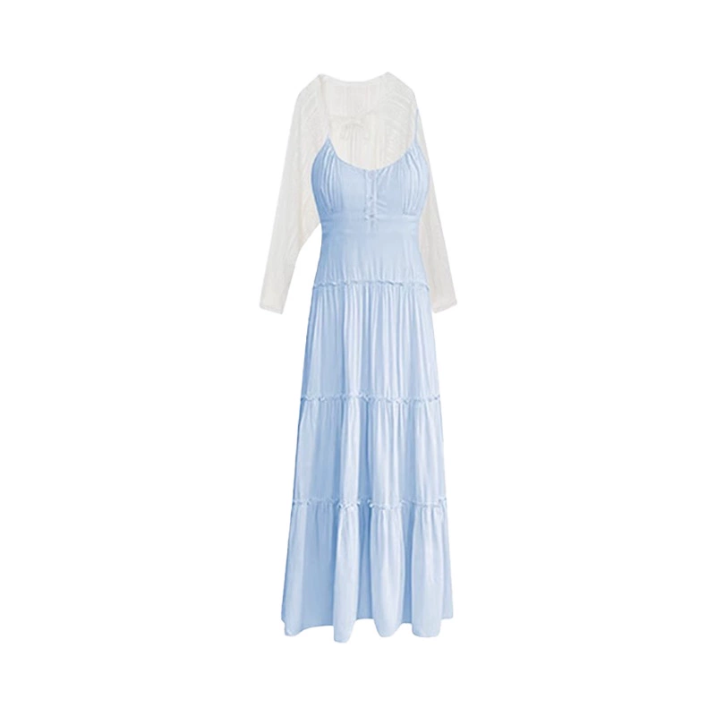 | nameOriginal | Breast-style outfit, early spring gentle style top, blue cardigan |