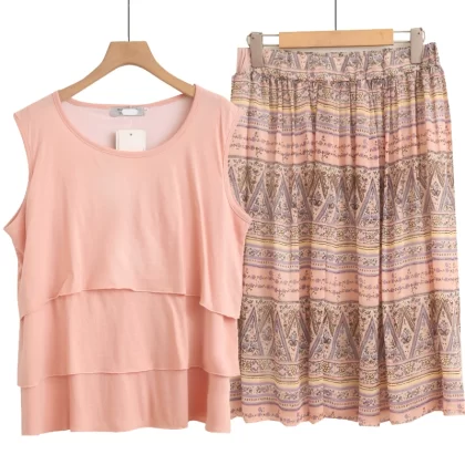 Breastfeeding printed suit pleated with skirt