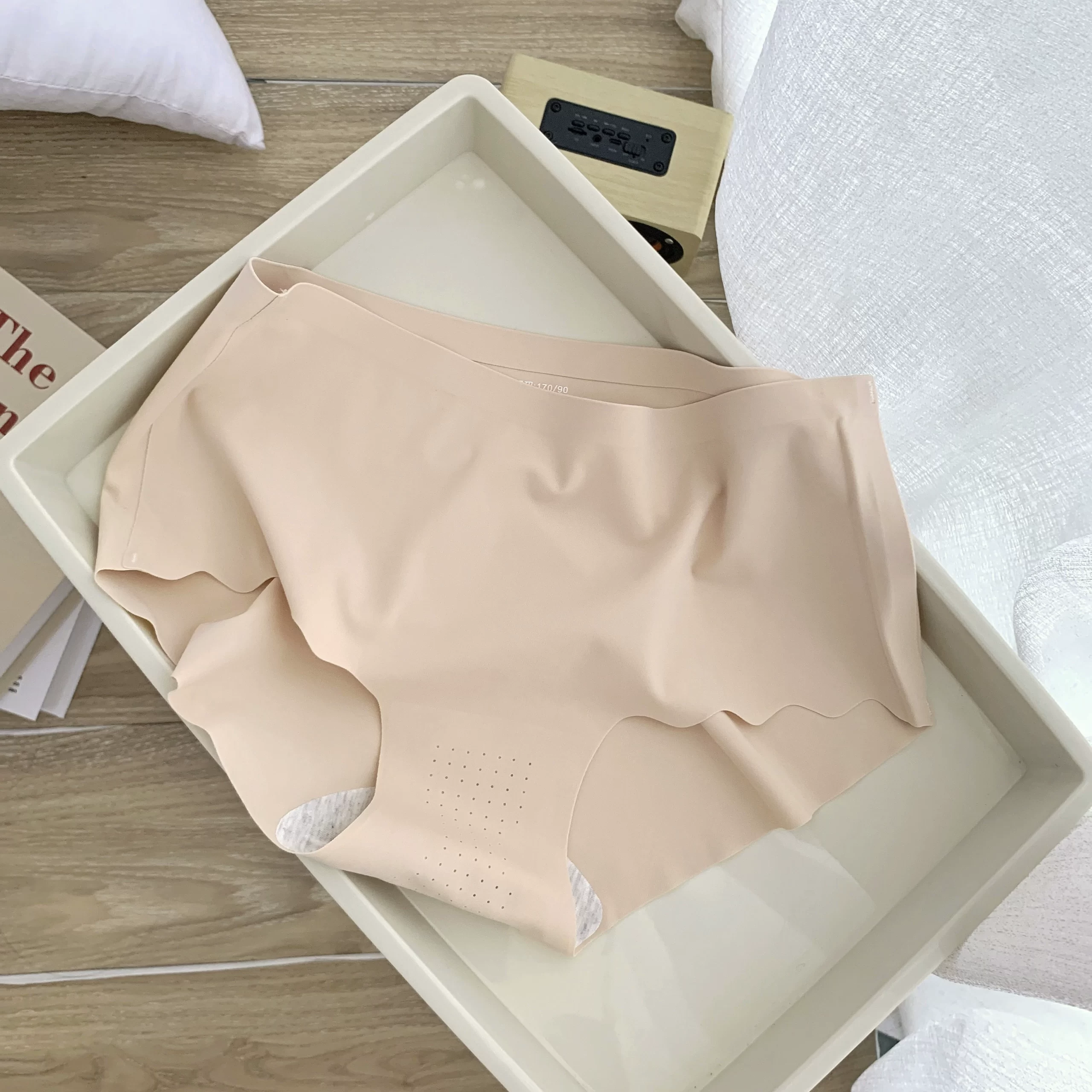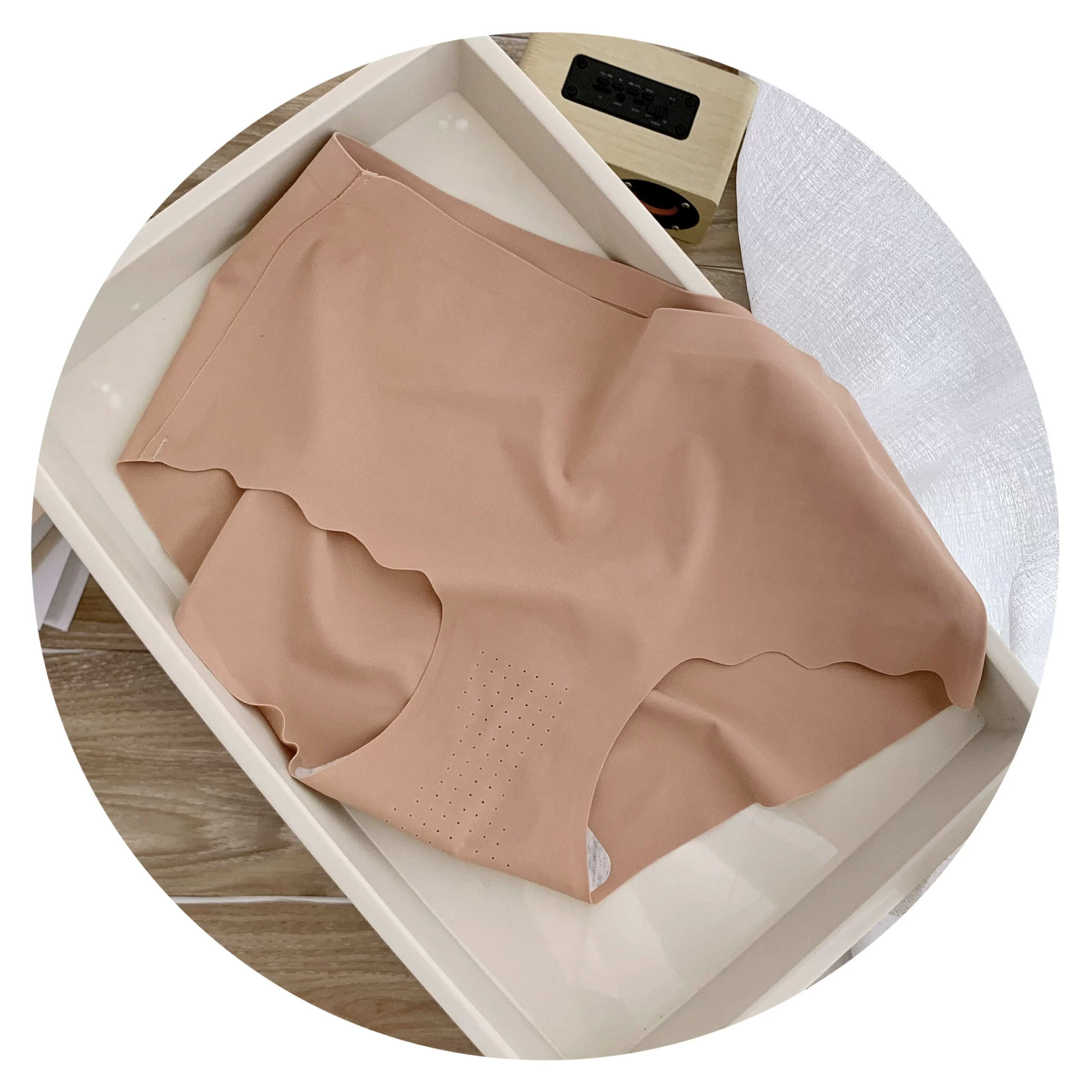 | nameOriginal | Breathable hole cotton crotch~Seamless one-piece mid-waist high elastic underwear for women, simple solid color wavy edge women's briefs |