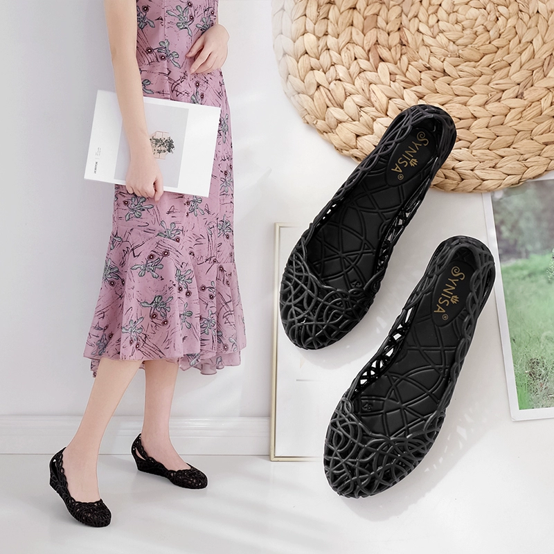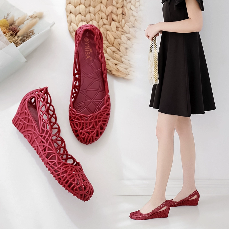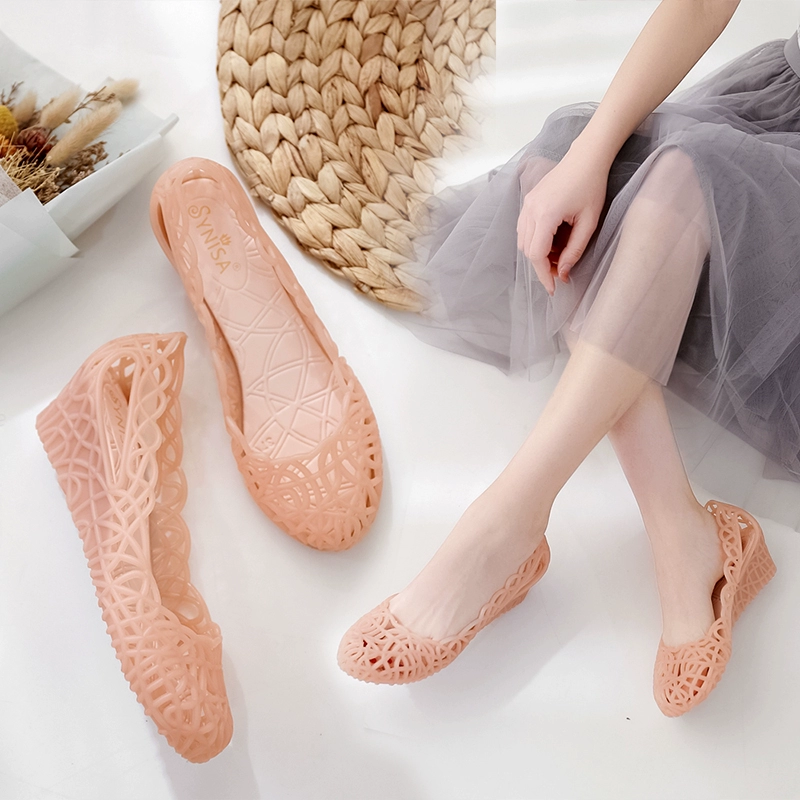 | nameOriginal | Breathable summer flower wedge beach hollow rain boots |