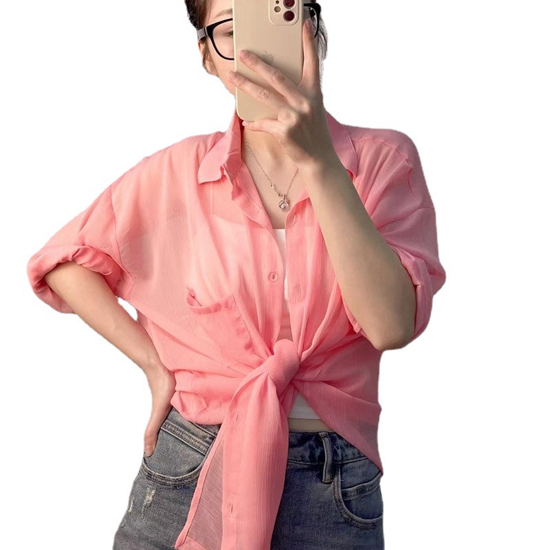 | nameOriginal | Breathable sun protection clothing women's thin chiffon shirt new summer shawl with strap skirt cardigan outer wear small coat |