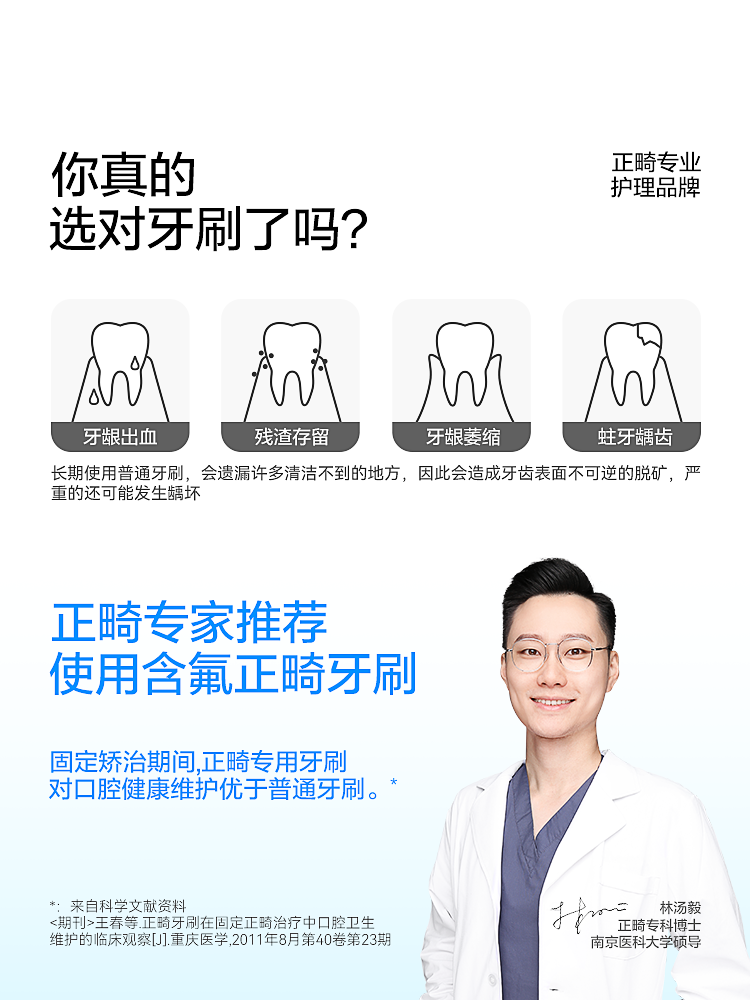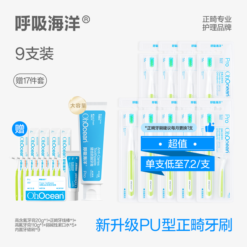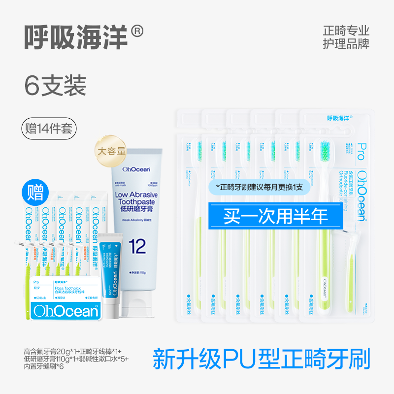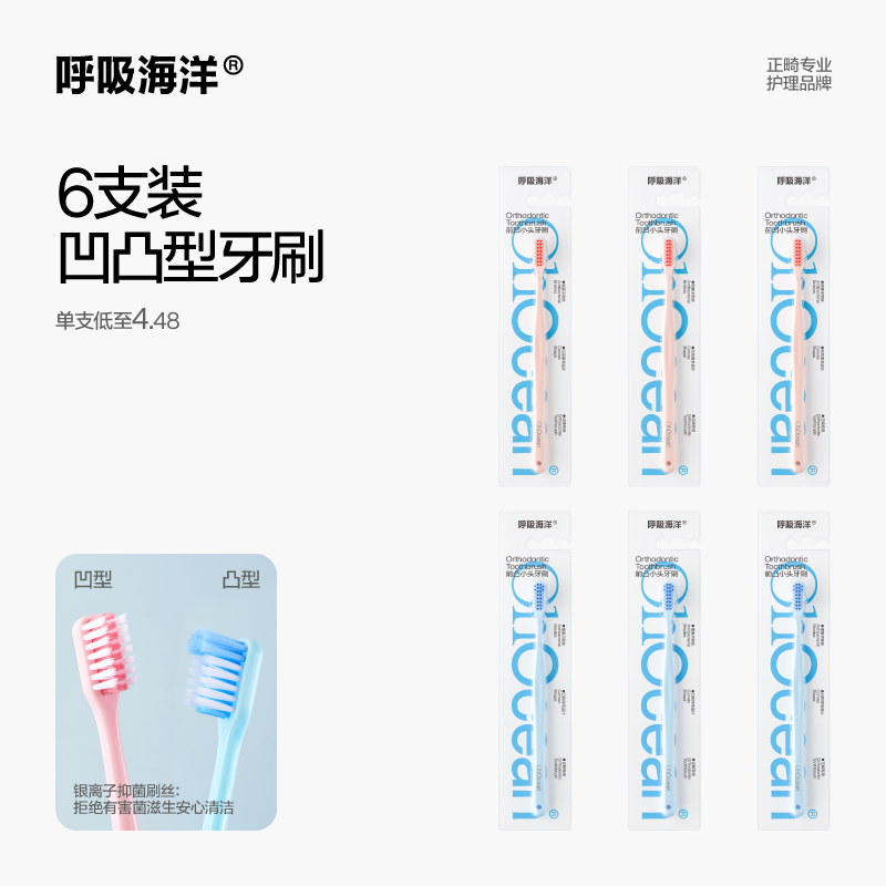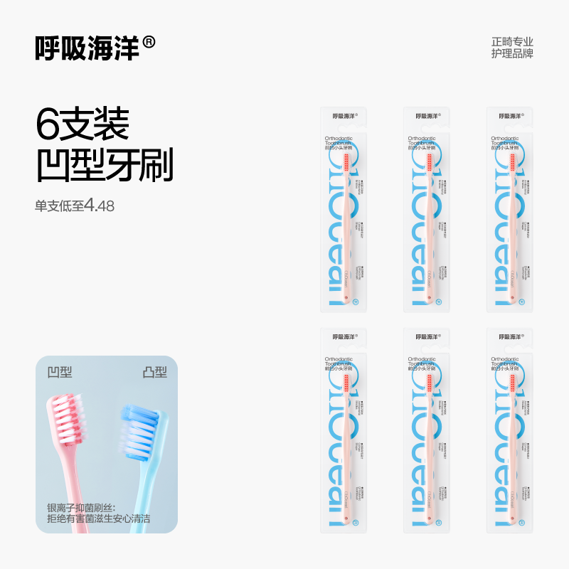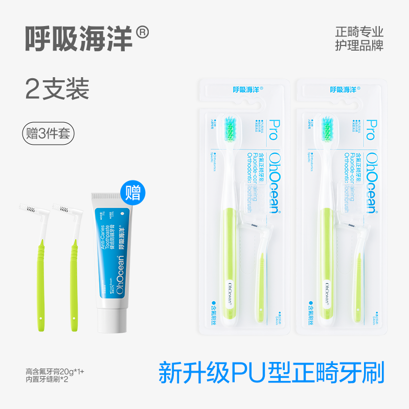 Breathe Ocean orthodontic toothbrush for teeth correction, special for teenagers, adults and children, soft-bristle braces toothbrush, interdental brush