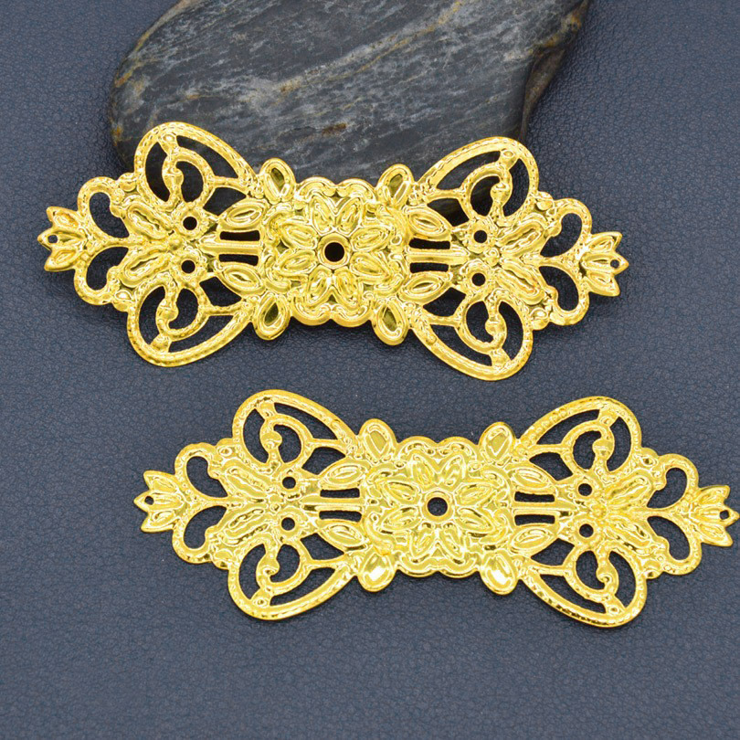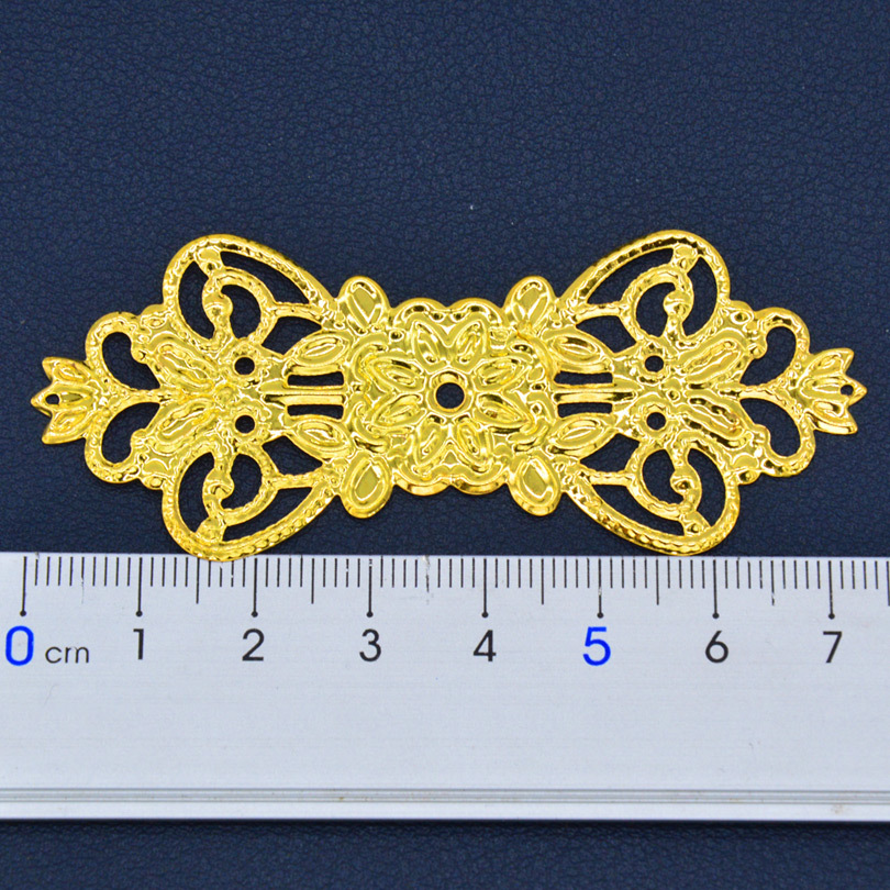 | nameOriginal | Bridal headdress flower piece 74*31mm bow flower piece double crown hollow gold piece long flower piece |
