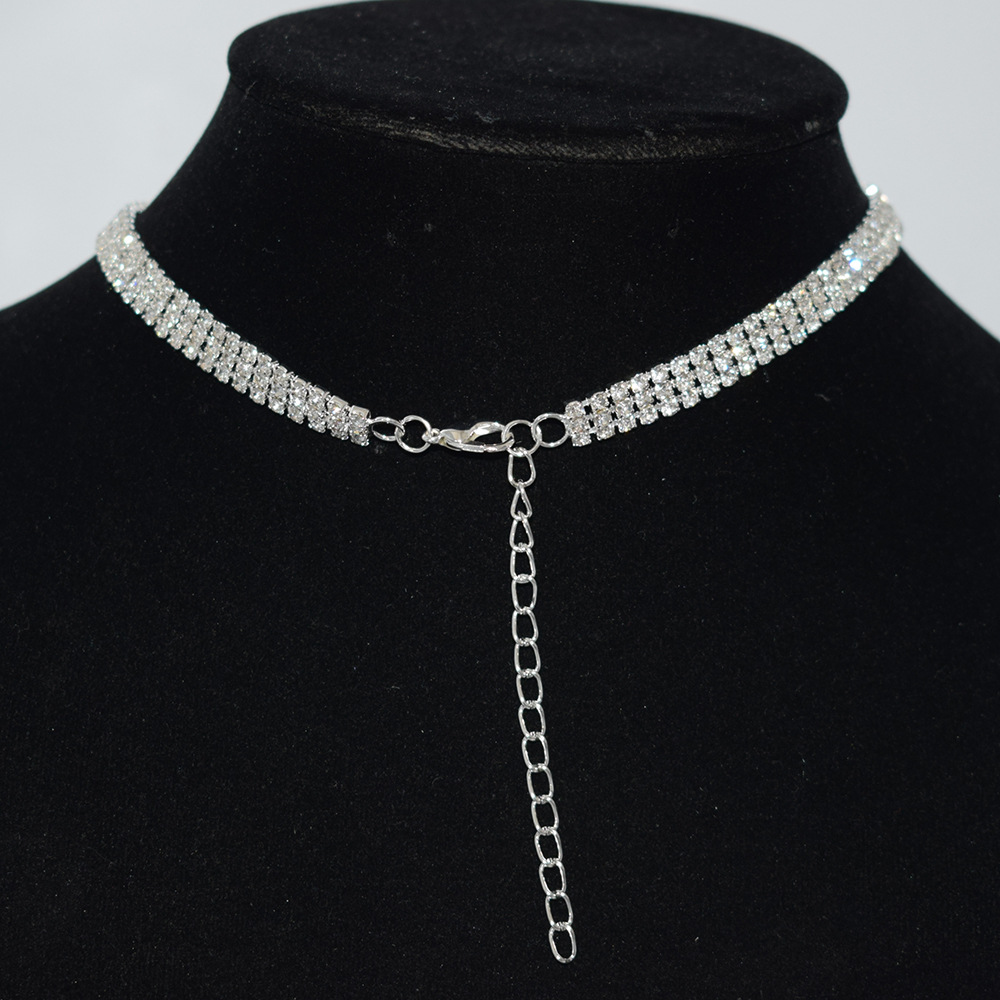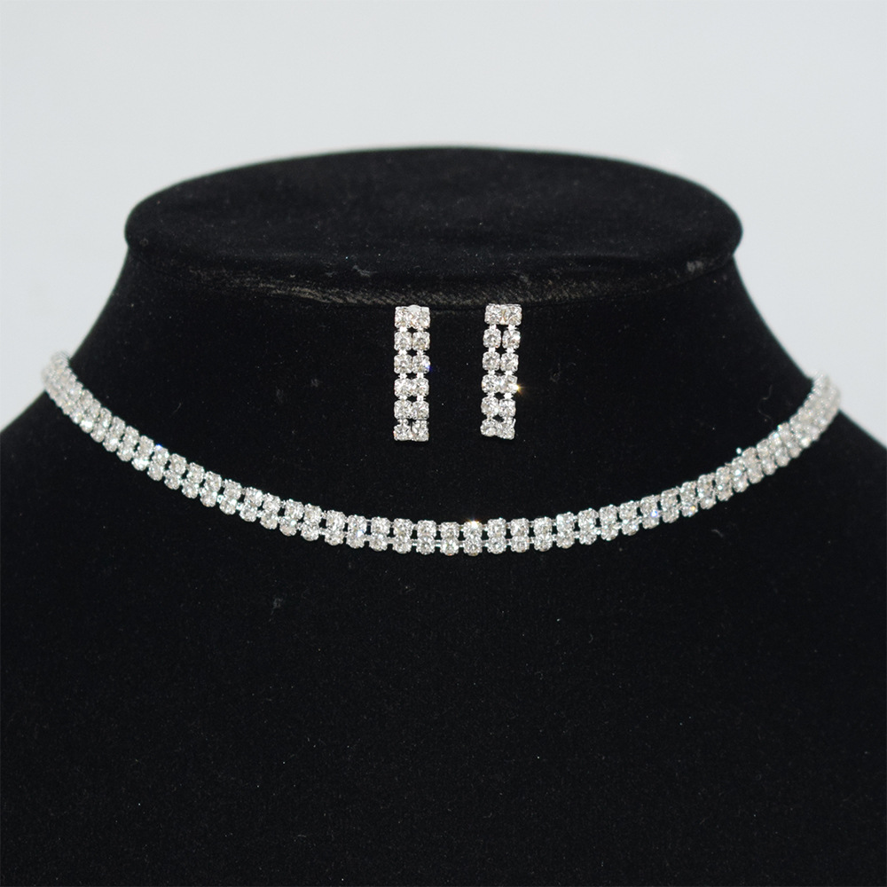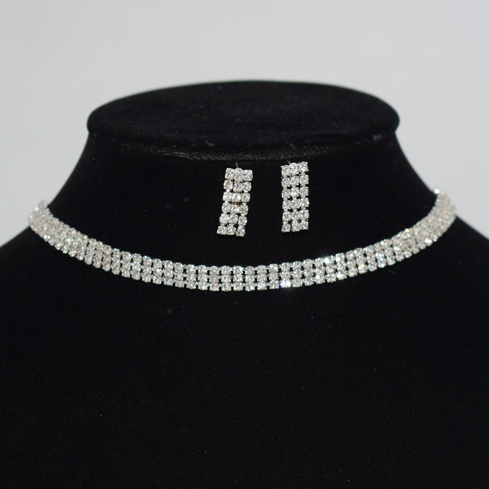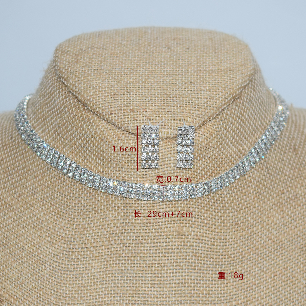 | nameOriginal | Bridal jewelry 2/3 row gold and silver necklace earrings wholesale Europe and the United States two-piece rhinestone claw chain jewelry set |