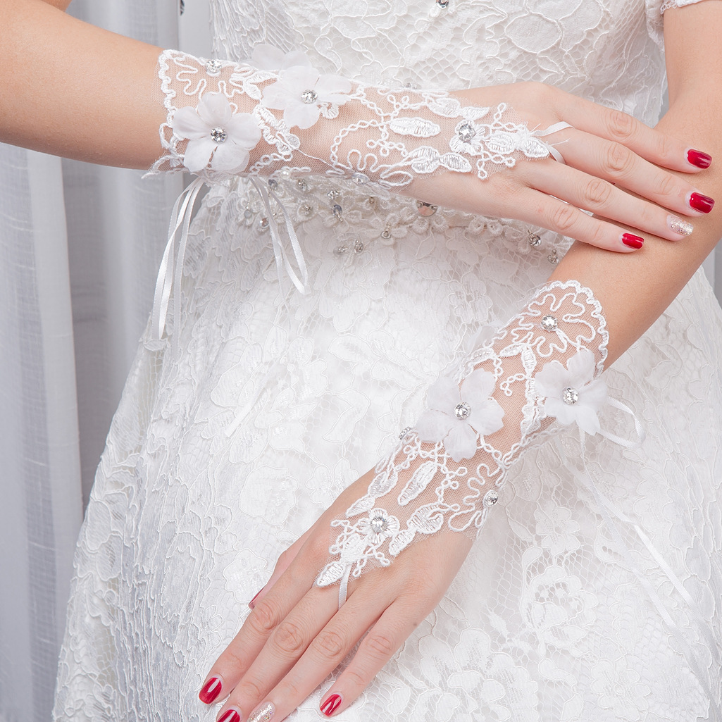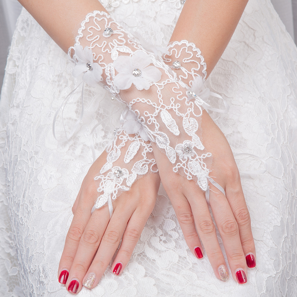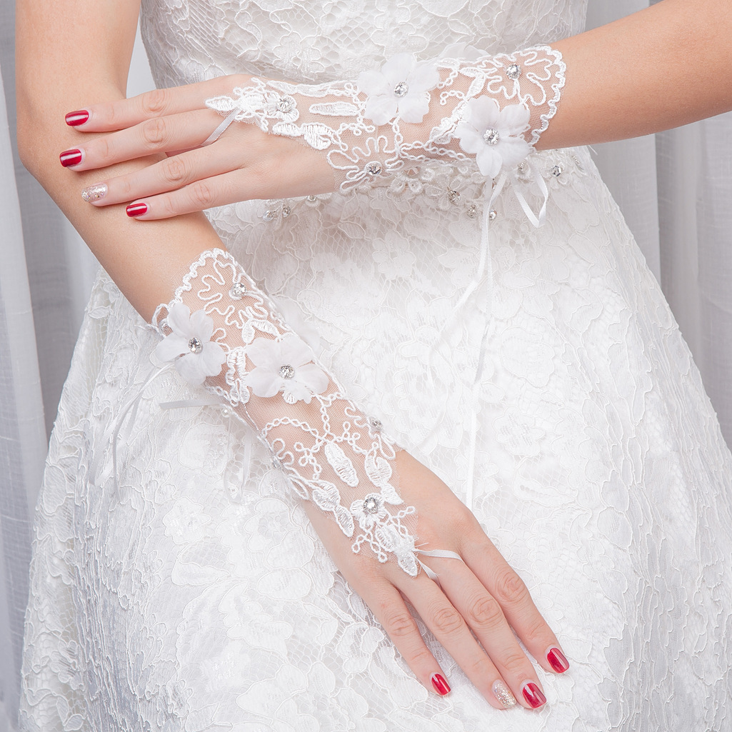 | nameOriginal | Bridal wedding gloves lace Dew back Hook finger flower diamond decoration wedding instrument gloves 1050 |
