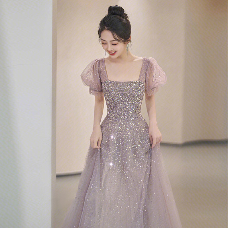 | nameOriginal | Bride wine red toasting clothes usually can wear high-end sense dress summer 2024 new door engagement dress |