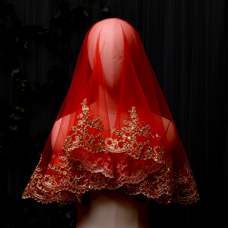 | nameOriginal | Bride's Going Out Yarn Translucent Red Hijab Wedding Lace Red Yarn Xiuhe Xipa Chinese Style Wedding Bandana |