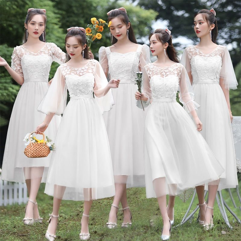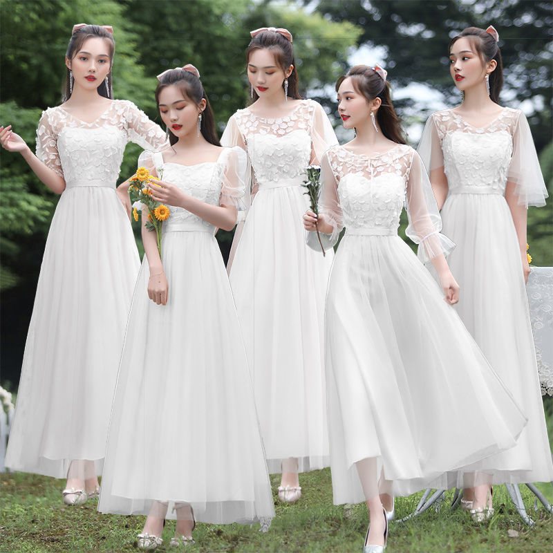| nameOriginal | Bridesmaid Dress 2021 New White Long Simple Atmosphere Fairy Elegant Bridesmaid Sisters Usually Wear Dress Women |