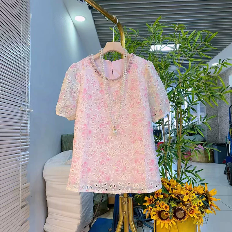 | nameOriginal | Bright diamonds, hollow flowers, national style short sleeves for fat girls to reduce their age |