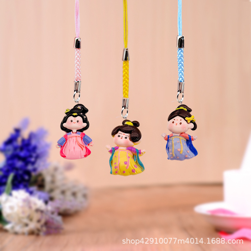 | nameOriginal | Bright Face Antique Tang Dynasty Princess Mobile Phone Lanyard Cartoon Backpack Bag Hanging Ornaments U Disk Earphone Cover Pendant Travel Gifts |